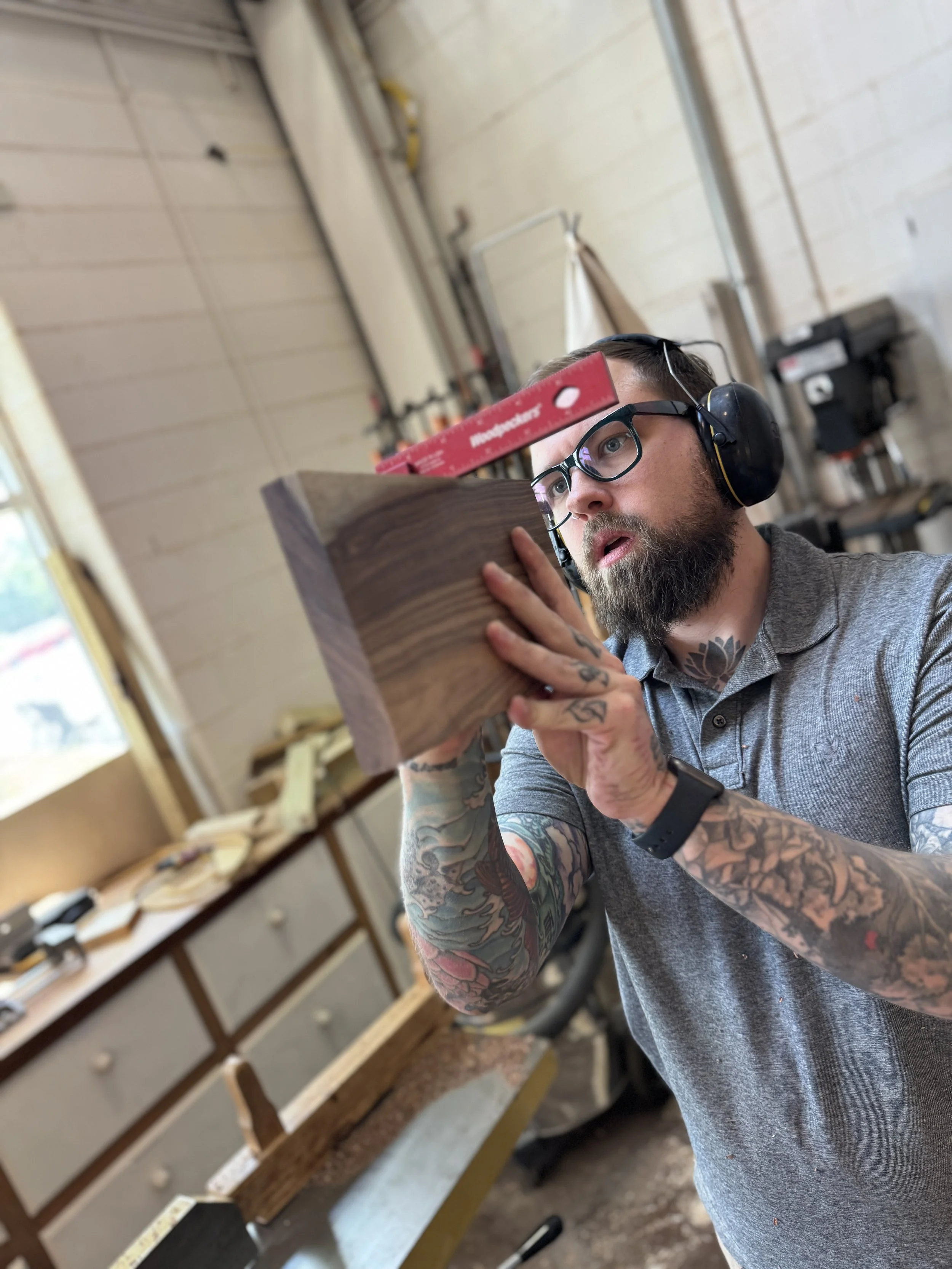 Before woodworking, I earned a master’s in English and taught at the University of South Carolina. I later built custom pieces for Bricker and Beam in Columbia, SC, and now teach carpentry at Guilford Technical Community College. My boxes often feature layered laser-cut art, inspired by myth and shaped by the grain of the wood itself. Some clients say they look like they *should* move and that’s by design. I like my pieces to surprise quietly, with meaning that reveals itself slowly.