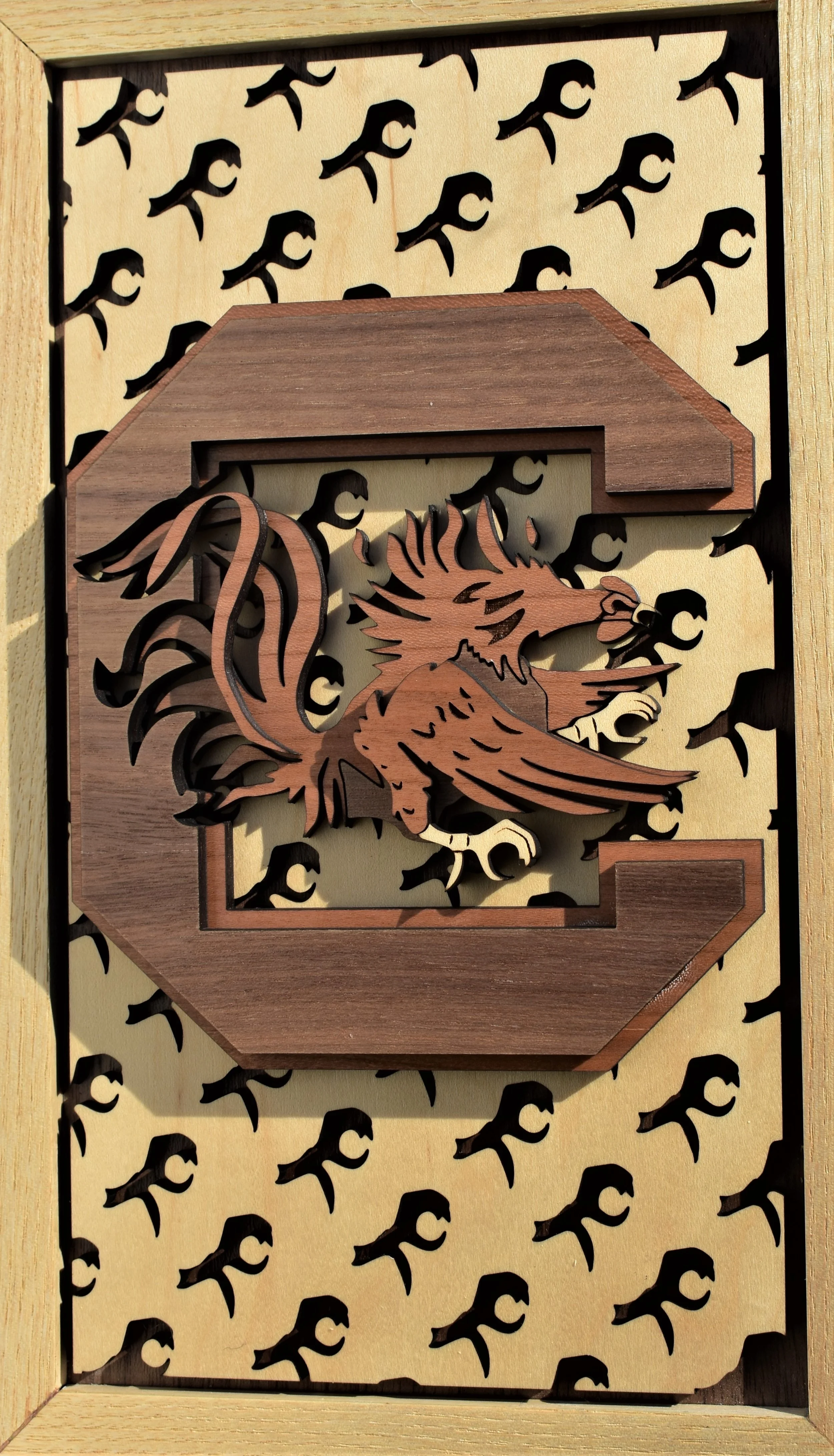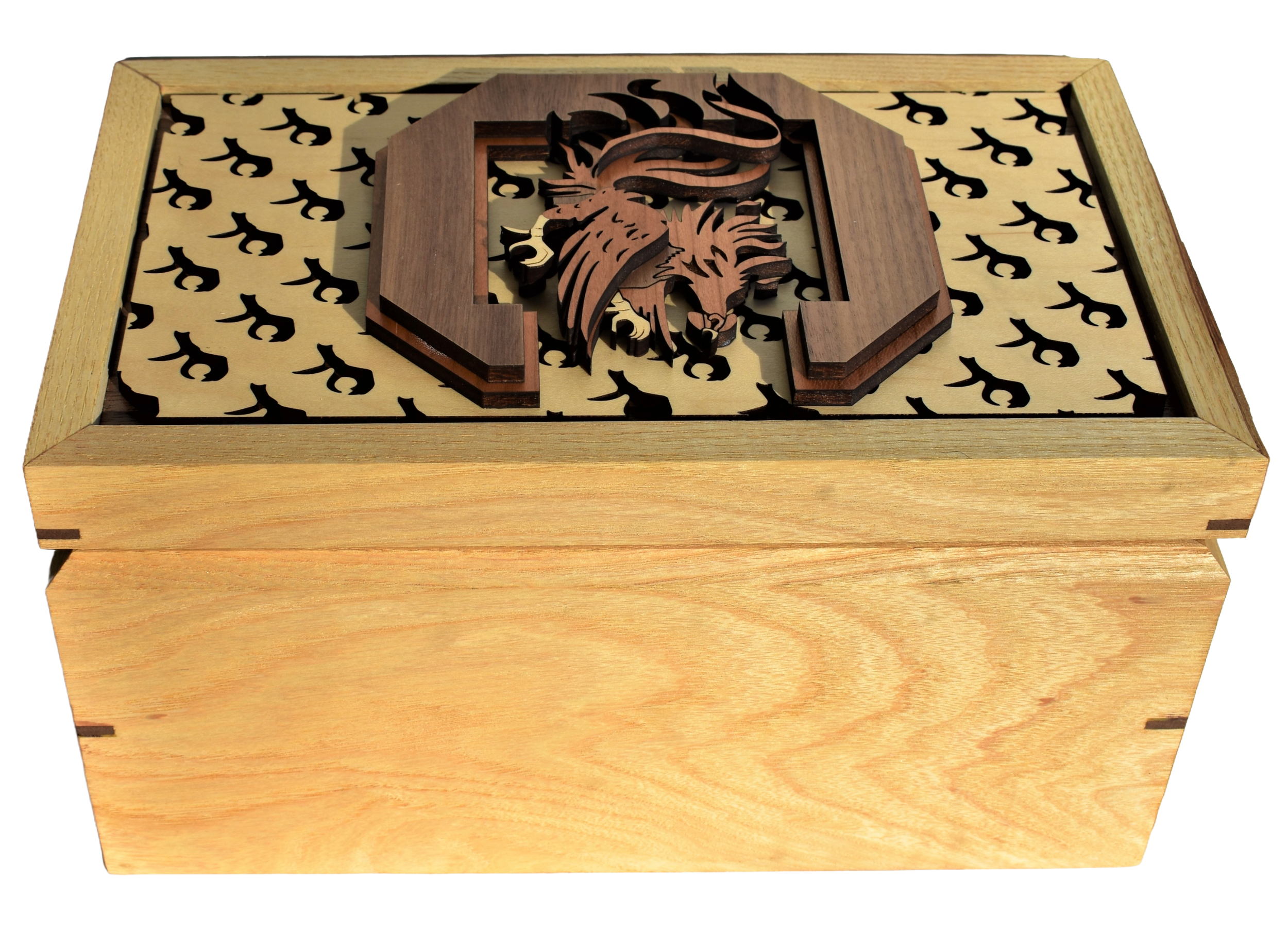 My client asked me to create a custom Gamecocks themed box for a gift to her husband. She’d purchased a bottle of Blanton’s whiskey for him and wanted to present it in a special way that was unique to him.